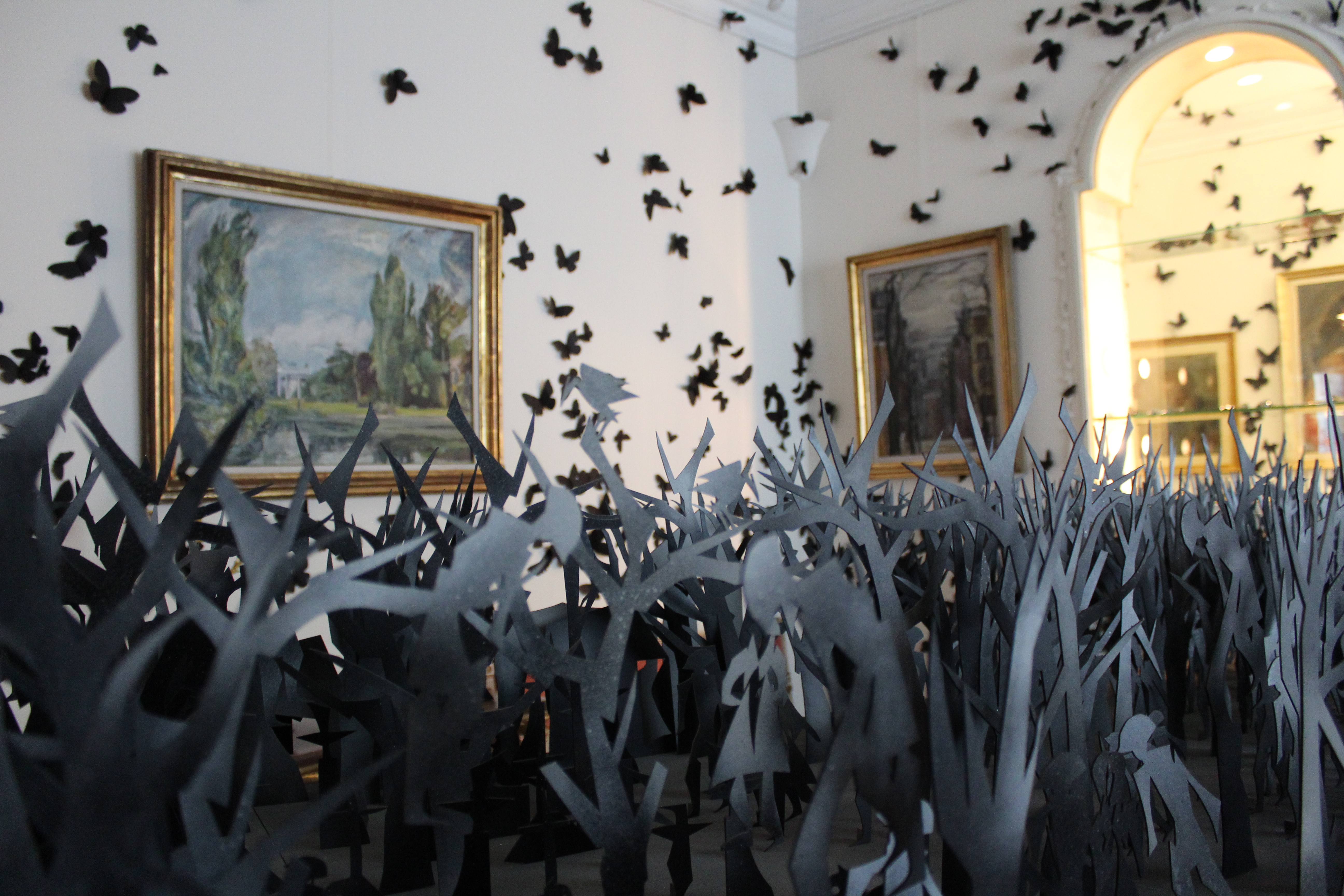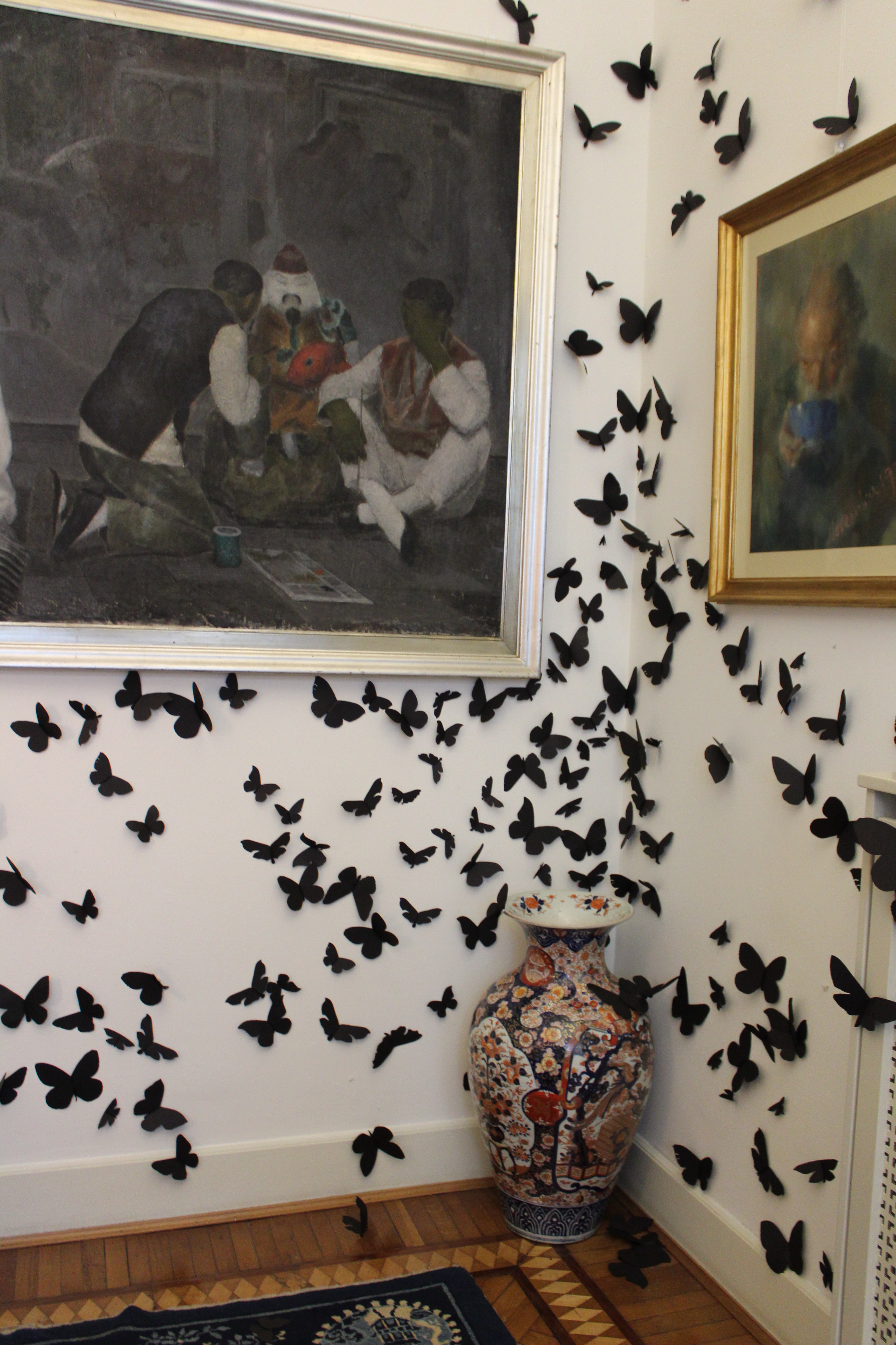L’installazione ‘Black Cloud’, uno sciame di migliaia di farfalle nere invade gli ambienti della Fondazione già a partire dallo scalone d’ingresso. In totale 15mila farfalle popolano gli spazi nuovi e quelli già esistenti della sede espositiva.