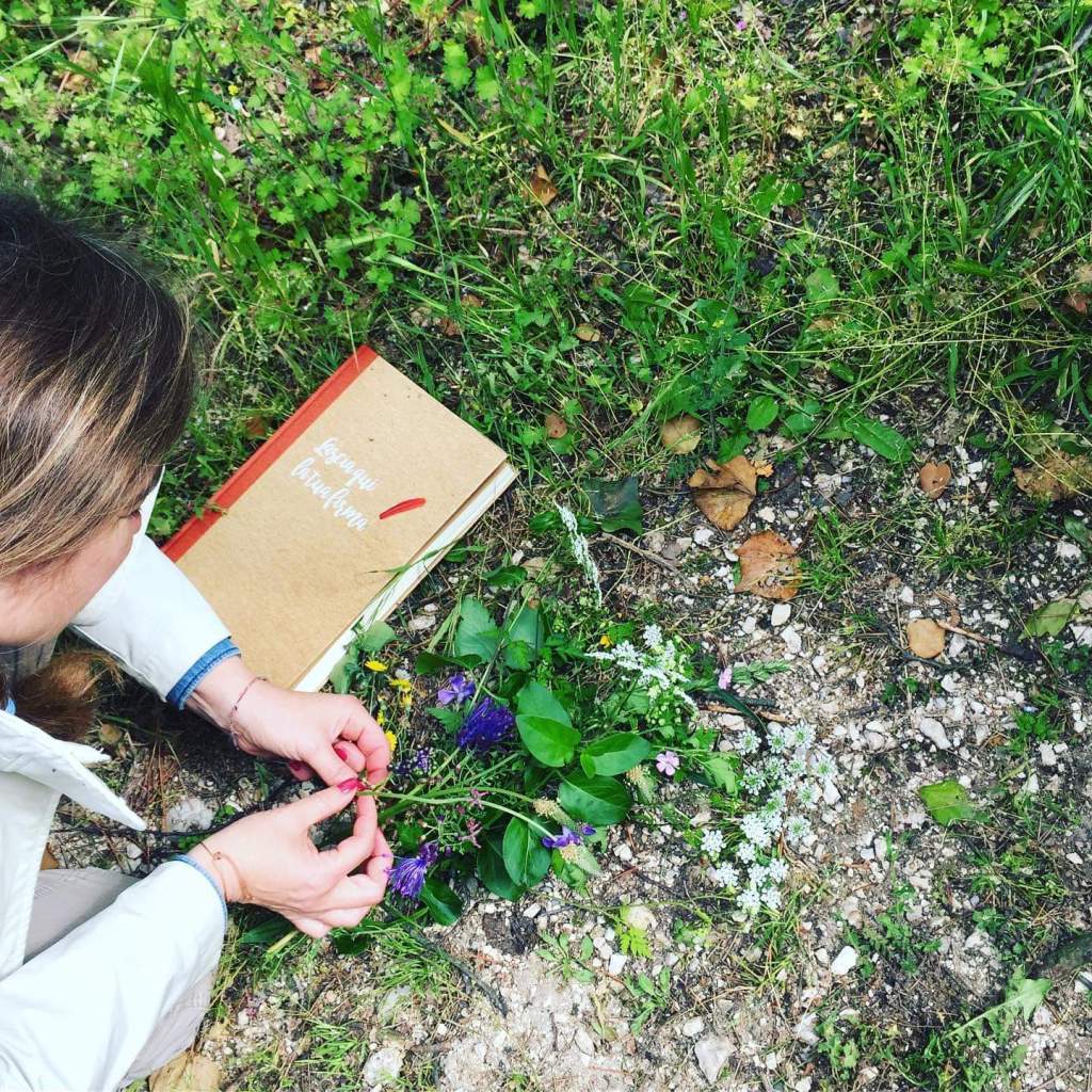 Il laboratorio è iniziato con una passeggiata tra le colline moreniche attorno a Mutty. Abbiamo raccolto erbe, foglie, piccoli fiori – elementi che sarebbero poi diventati parte delle nostre immagini. È stato bello già solo quello: camminare e osservare con attenzione, pensando non a cosa è bello da vedere, ma a cosa potrebbe diventare interessante su un foglio, sotto forma d’ombra e impronta.