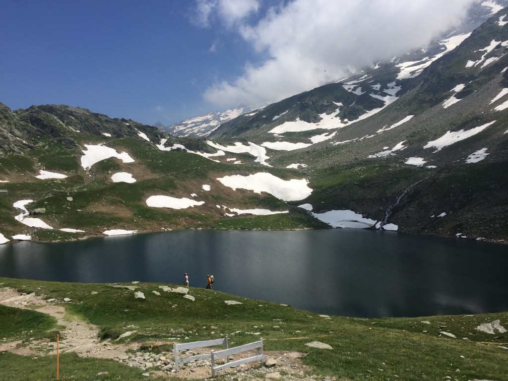 Quando finalmente si apre davanti agli occhi il Rifugio Giovanni Bertacchi, a quota 2175 metri, il cuore fa un balzo. Il rifugio si affaccia sul suggestivo lago d’Emet, uno specchio d’acqua incastonato tra le montagne, così perfetto da sembrare dipinto. È uno di quei luoghi che ti fanno dimenticare tutto il resto, dove l’aria è più leggera e i pensieri si sistemano da soli.