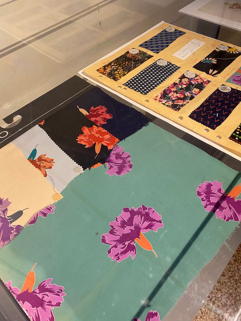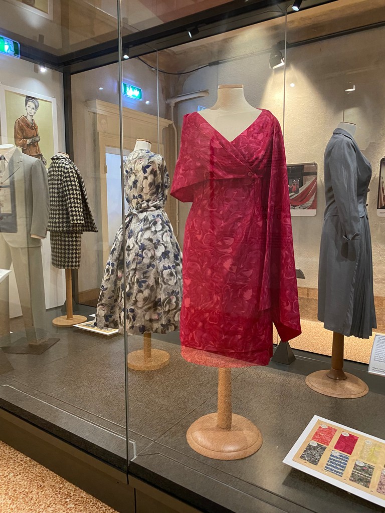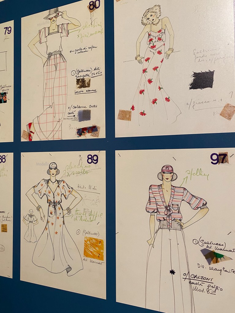 Ho trovato bellissimo il modo in cui la mostra riesce a intrecciare design, moda e comunicazione: si passa dalle fotografie vintage agli schizzi architettonici, dai tessuti storici ai nomi altisonanti come Giorgio Armani e Krizia. È come aprire un baule di famiglia e ritrovare, tra stoffe pregiate e immagini in bianco e nero, tutta la creatività e il gusto di un’epoca.
