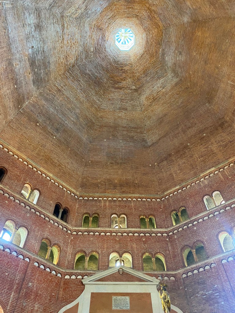 Proprio accanto al Duomo, il Battistero di San Giovanni merita una sosta. Costruito nel 1167 in stile romanico, colpisce per la sua pianta ottagonale e la sobria eleganza dell’interno, realizzato in mattoni a vista. L’atmosfera è intima e raccolta, quasi fuori dal tempo: un luogo che invita al silenzio e alla contemplazione, perfetto per assaporare il lato più spirituale di Cremona.