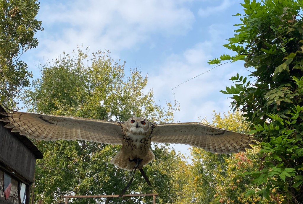 Il momento più atteso della visita è senza dubbio lo spettacolo di falconeria, che si svolge ogni domenica alle 15:30. Qui i veri protagonisti sono loro: gufi silenziosi, poiane agili e falchi velocissimi, che si librano in volo e sfiorano le teste del pubblico in acrobazie spettacolari.