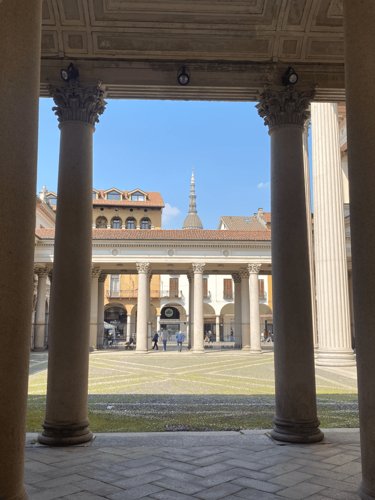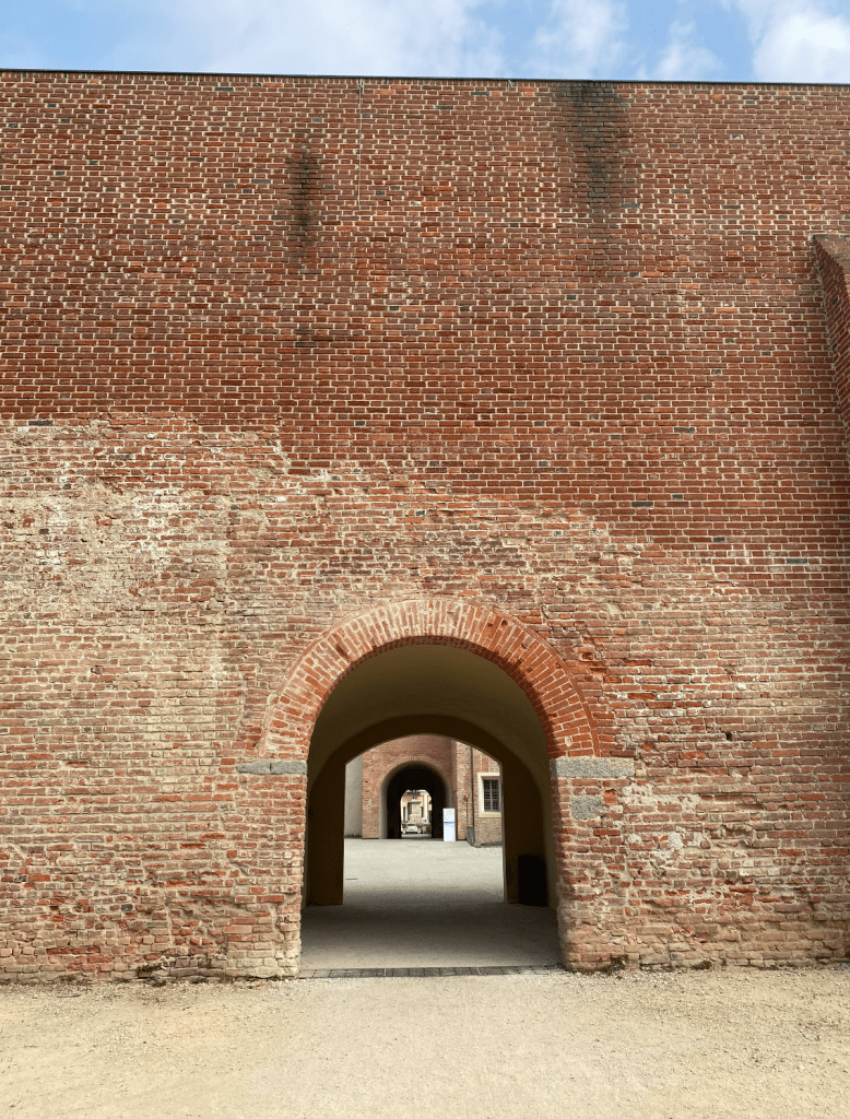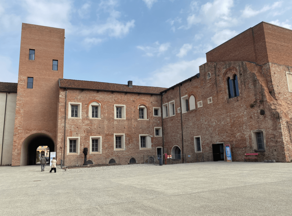 Prima di concludere la giornata, attraversiamo il famoso Broletto di Novara, al cui interno si trova anche la Galleria d’Arte Moderna Paolo e Adele Giannoni, che però non abbiamo il tempo di visitare. Il complesso, un tempo sede del potere civile medievale, raccoglie edifici di epoche diverse attorno a un cortile che sembra fatto apposta per essere fotografato.