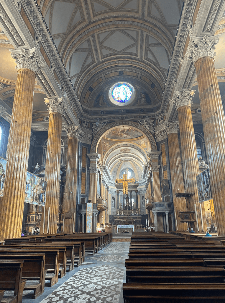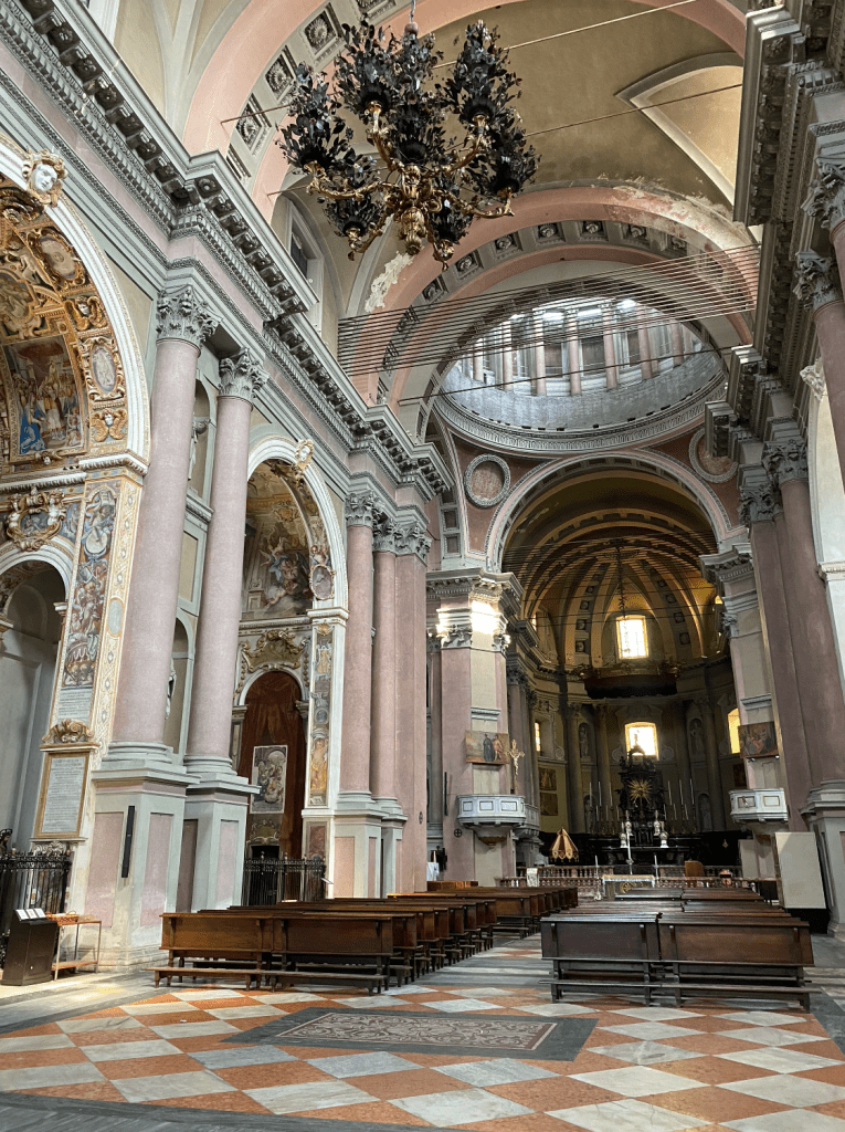 È possibile salire fino in cima con visite guidate curate da Kalatà, ma è necessario prenotare online. Non essendo, purtroppo, riuscite a riservare dei posti per quella data, ci siamo quindi dedicate all’interno della basilica, dove si trovano le reliquie di San Gaudenzio e importanti opere d’arte rinascimentali.