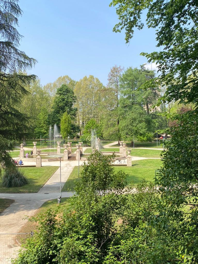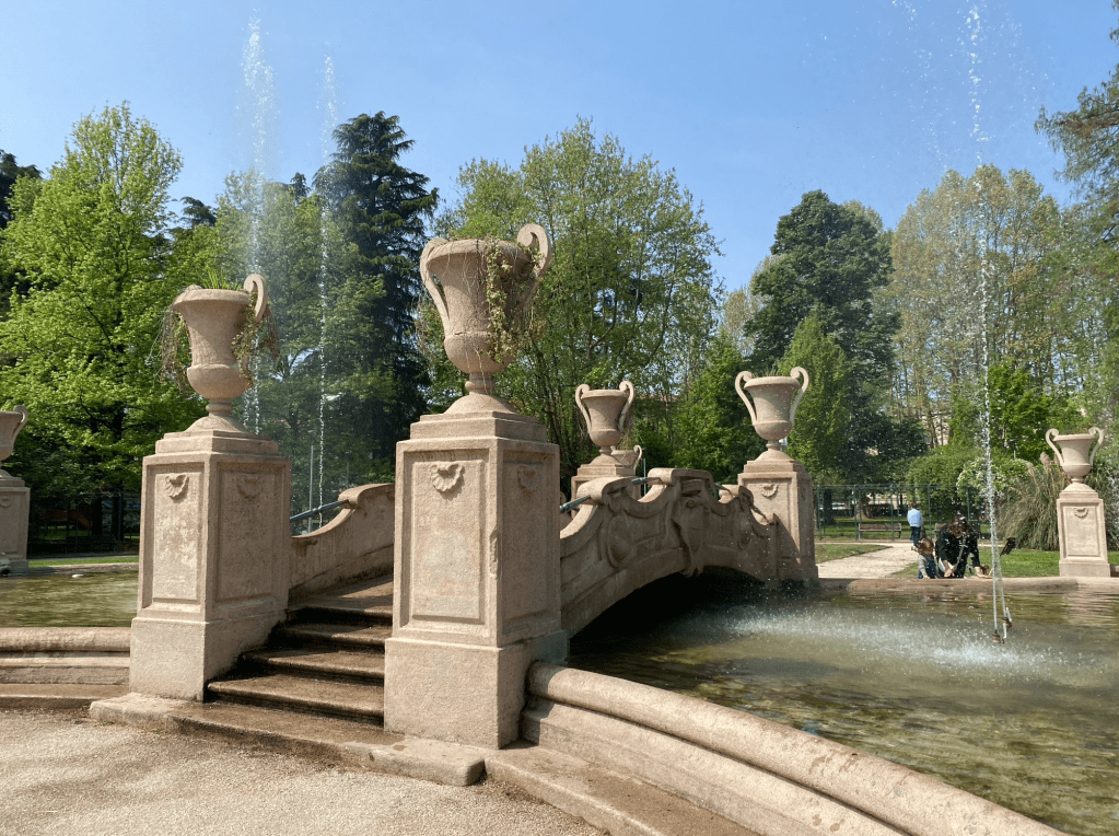 Uscite dal castello, proseguiamo dentro il parco fino a raggiungere la fontana accanto all’area giochi, un angolino davvero carino. Ci facciamo quindi scattare delle foto da una signora del posto, seduta lì a godersi il sole, che ci chiede con sorpresa se davvero fossimo venute a Novara per turismo. Sorridendo annuiamo e continuiamo il giro.